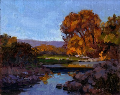 Beautiful painting! Love the way you brought a muted version of the tree color down into the foreground water.